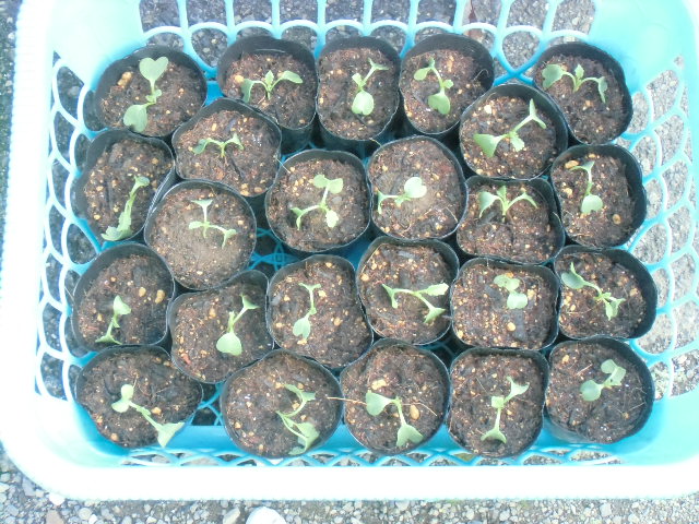 2021年に使用したミニ白菜の種が残っていたので、試しに畑に蒔いてみたところ90%も発芽しました。古い種なので発芽率は悪いと思い込んでいたので、この結果には驚きました。ふつうは間引きをするところですが、もったいないので鉢上げをすることにしました。とりあえず24本やってみました。